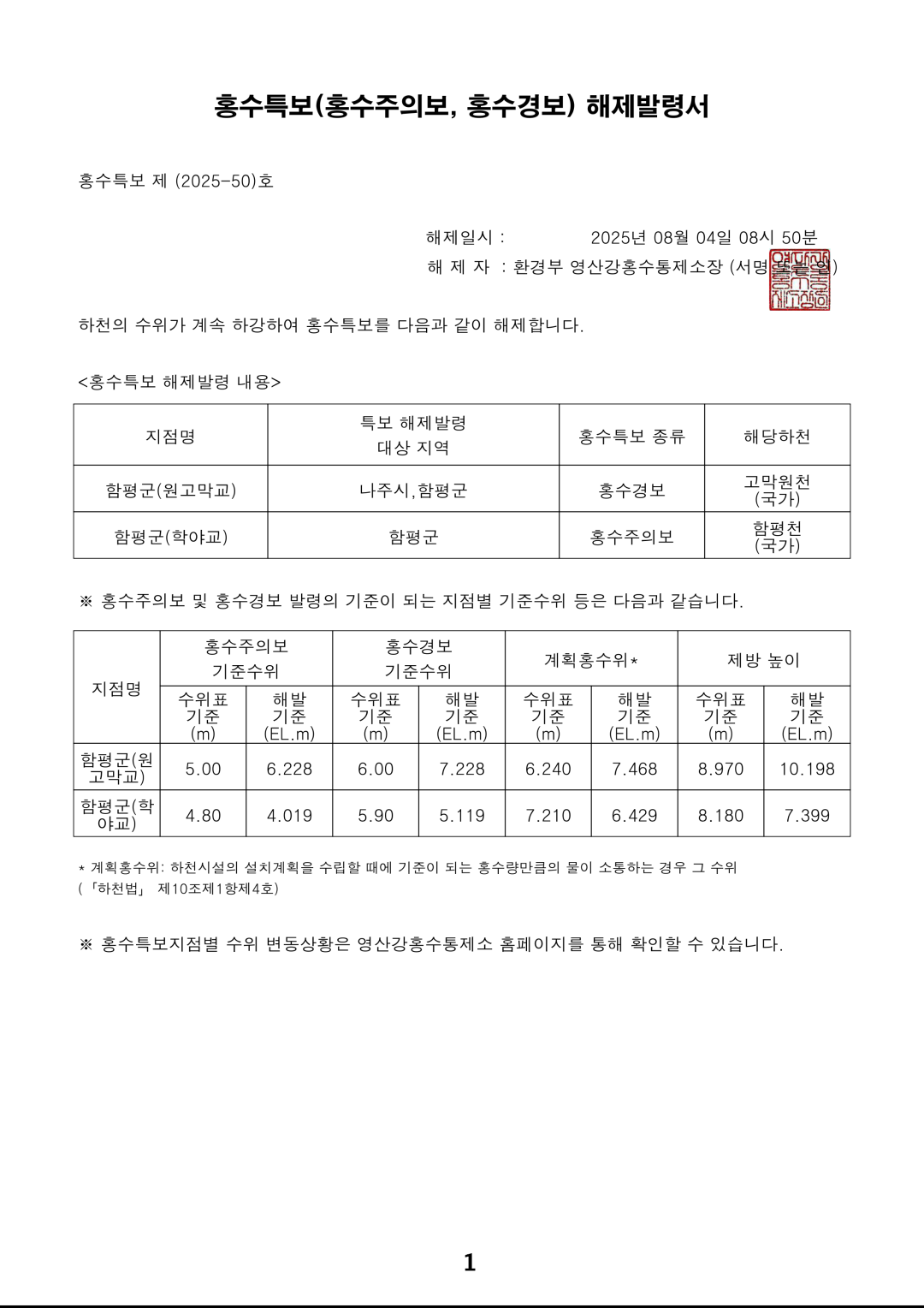 홍수특보 발령사항